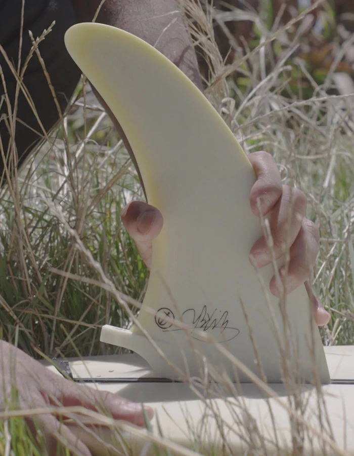The Mikey February Bonzer comes in two sizes and was made for stylish surfing on any size Bonzer but can also be used in your favorite single or mid-length setup. Solid white fiberglass layup with yellow colorway and emblazoned with Mikey’s signature.