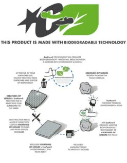 We want to reduce the impact our designs have on the environment. That’s why Creatures teamed up with Bio-Tec Environmental to deliver traction that offers lasting EVA performance, which breaks down in landfill at the end of your board’s life. Always packed in recyclable, biodegradable materials.