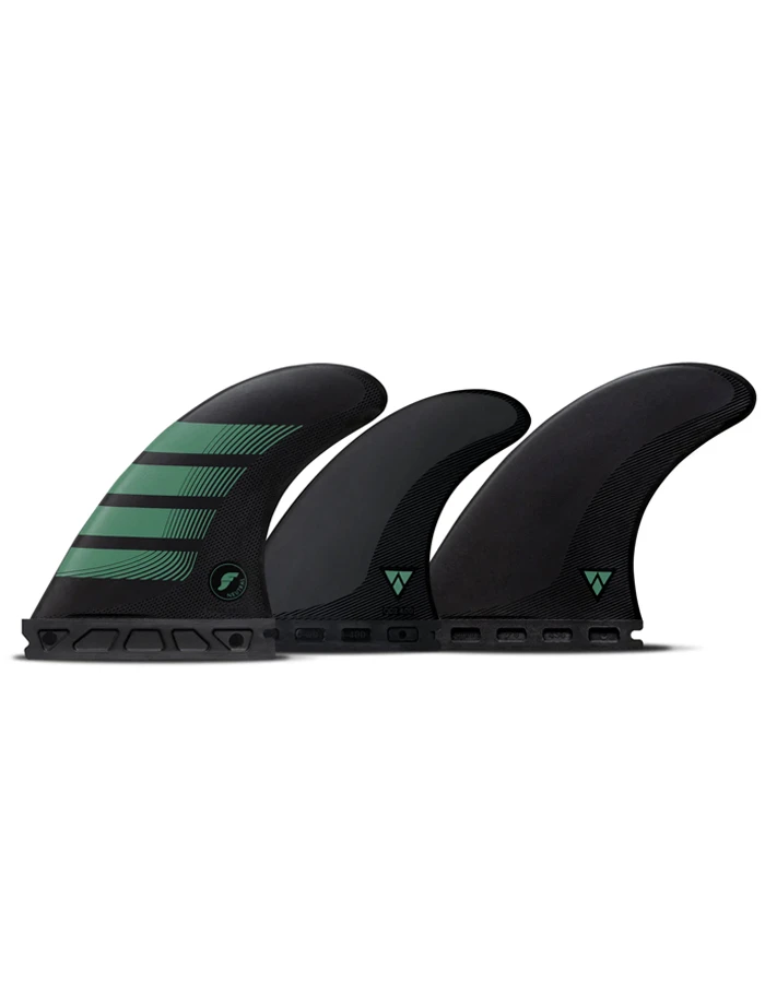 The F6 Alpha 5-fin is a medium sized set in the Neutral template category. Made in Huntington Beach, the Alpha product line combines Bureo’s NetPlus recycled fishing nets with Futures’ Compound 6 carbon and air infused technology, offering stability and control at top speed. The rear fins are QD2 4.0 with Symmetrical foil. The 5-fin set is designed to be ridden as either a Thruster or Quad set-up, packaged together for more versatility through your quiver.Â