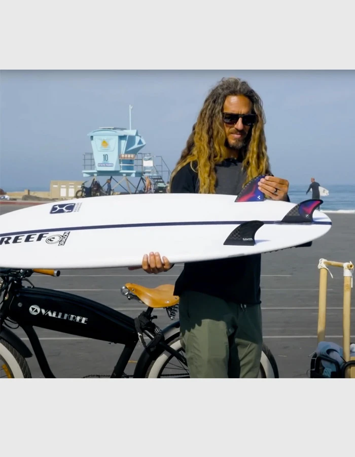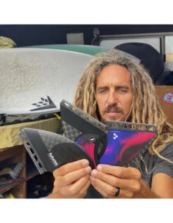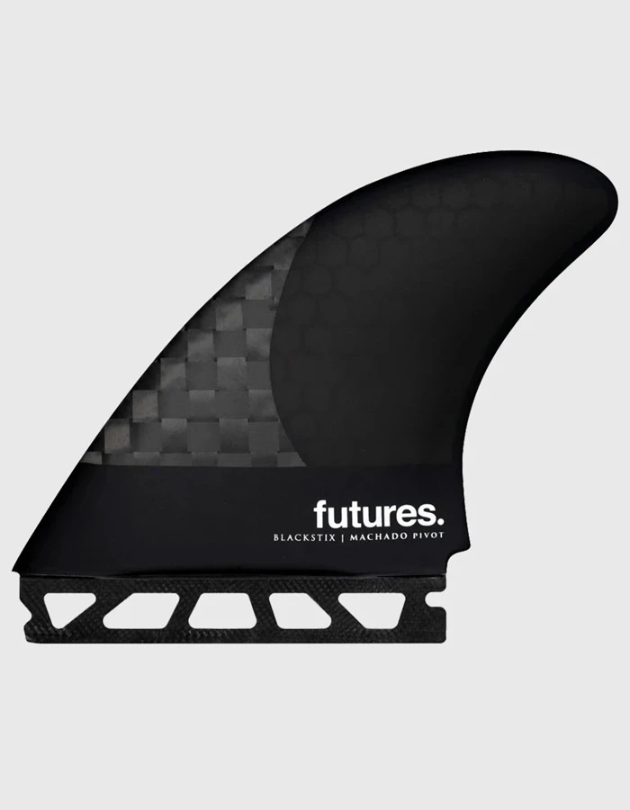 The Machado Pivot, designed by style guru Rob Machado, is a large sized thruster in the Pivot template category. This set is designed around the idea of a thruster incorporating the drive and response of a twin keel.  The combination of the extended base and reduced rake of the template pair perfectly with Futures’ V2 foil to create a very lively feel, ideal for high performance in the pocket surfing. This fin was design in conjunction with the Machado Glazer model.