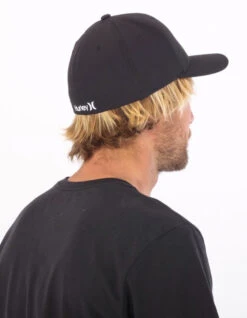 It has a classic structured curved bill design with embroidered Icon logo on the front and Hurley logo on the back.