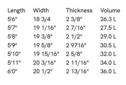 | 5’6″ | 18Â 3/4 | 2 3/8″ | 26.3 L |