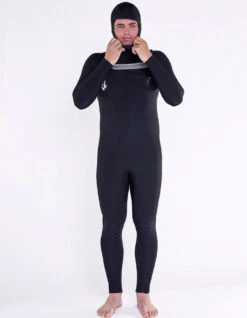 VOLCOM MODULATOR 5/4/3MM HOODED CHEST ZIP WETSUIT BLACK